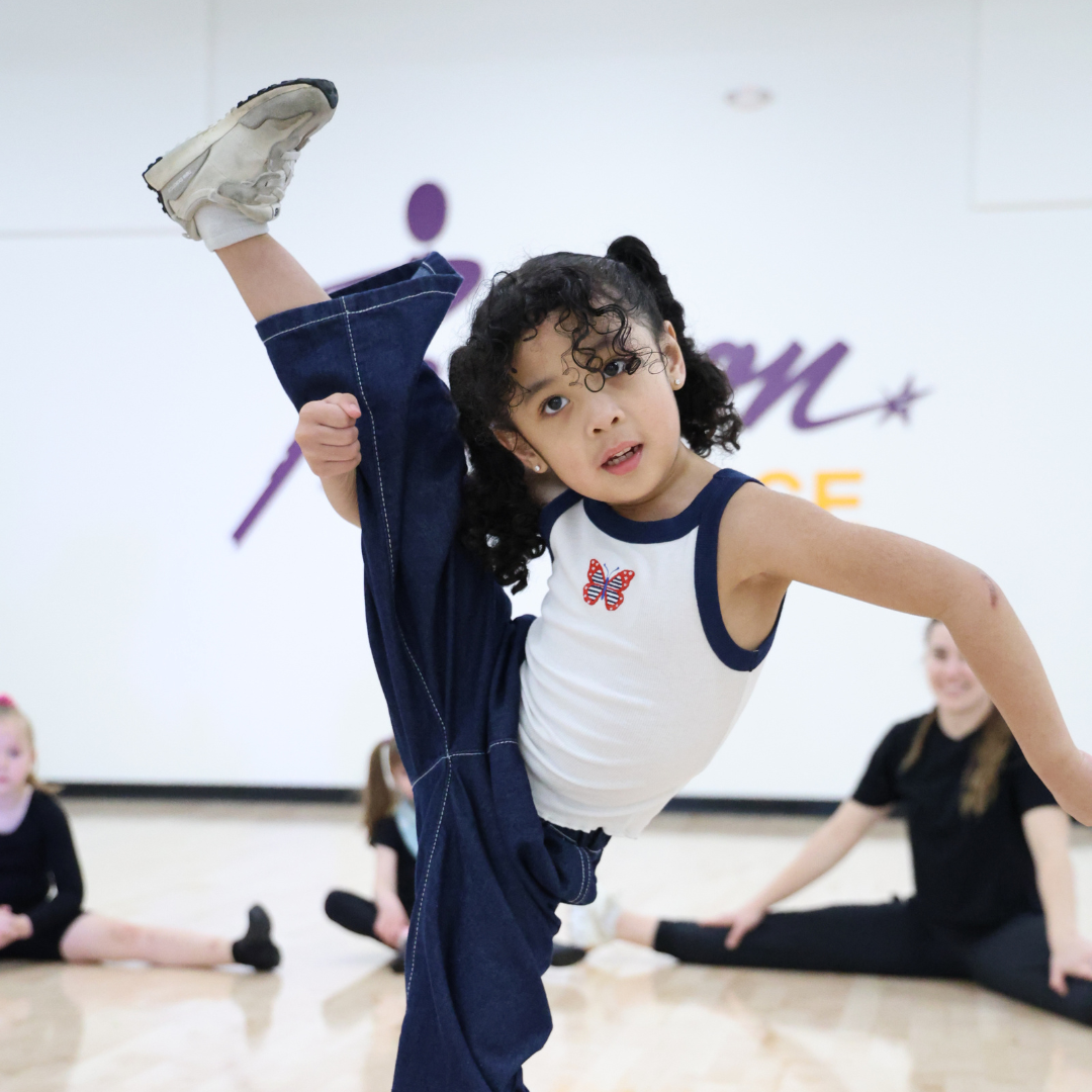 Our dynamic Hip-Hop/Jazz combo class catering to 5 year olds to Kindergarten will explore a fusion of two lively dance styles. The class will incorporate more refined hip-hop movements including isolations, foot and arm synchronization, and basic grooves. Keeping a heavy focus on individuality, priority is placed on developing personality and building identity through fun movements and choreography. Paired with both sharp and smooth moves of jazz, dancers will enjoy playful warm-ups, easy-to-follow routines, and interactive games. Students can expect to develop coordination and rhythm in a supportive and encouraging environment. Whether they’re busting a move to upbeat hip hop tracks or feeling the flow of jazz, this class helps little dancers Build confidence, creativity, and teamwork, all while having a blast! They can also perform for their loved ones in our Winter Showcase and Summer Recital!
